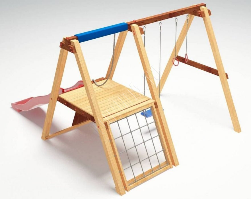 Игровой комплекс Савушка 1 при своих небольших размерах обладает довольно широким функционалом (который по желанию можно легко расширить). Надо заметить, что качественное отличие данного комплекса заключается в широкой платформе в 1 метр, что позволило дополнить комплекс еще одним спортивным снарядом. В данном случае это сетка-лазалка. А на качелях могут кататься даже родители! Детский городок "Савушка 1" предназначен для дачи, коттеджа.